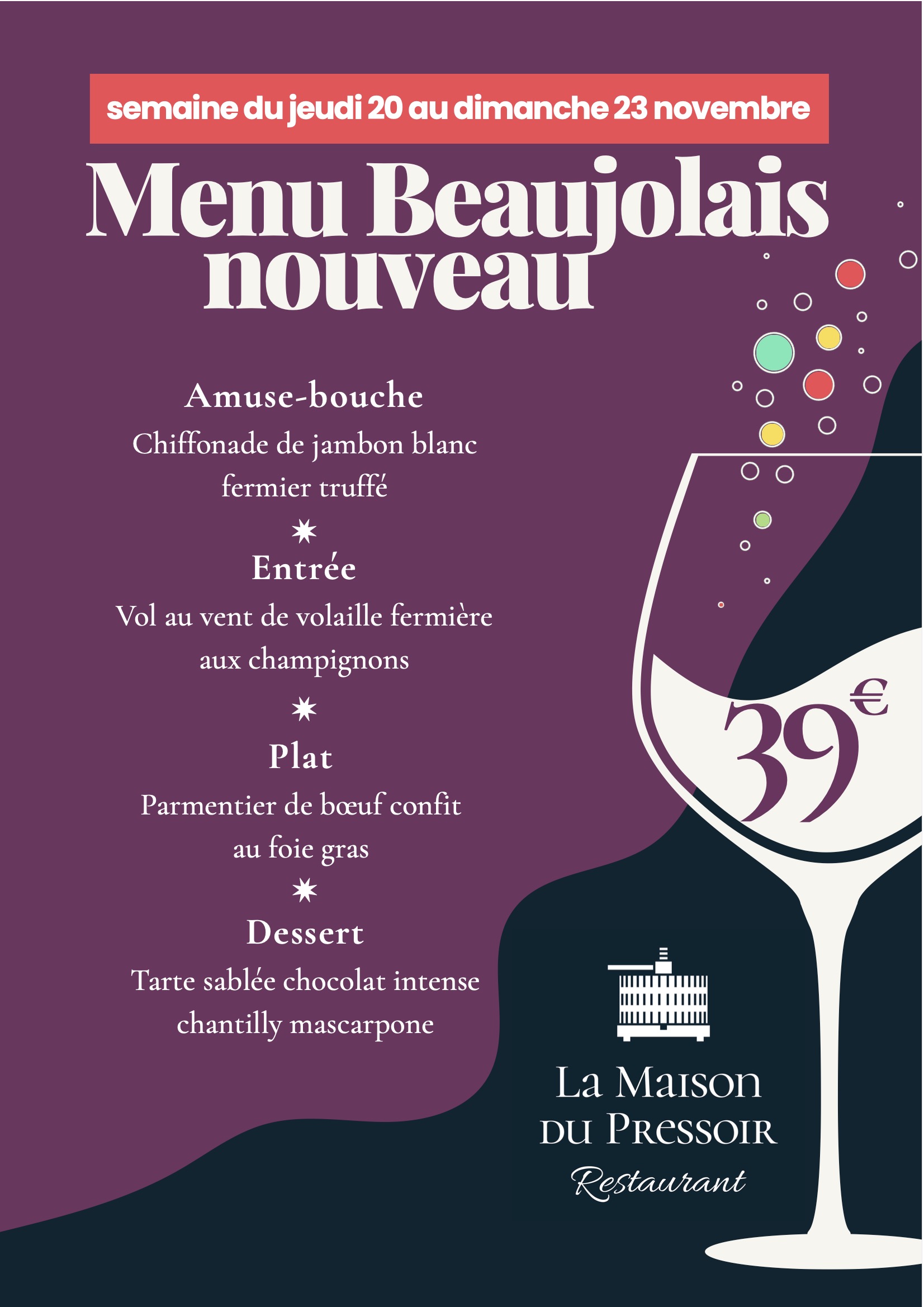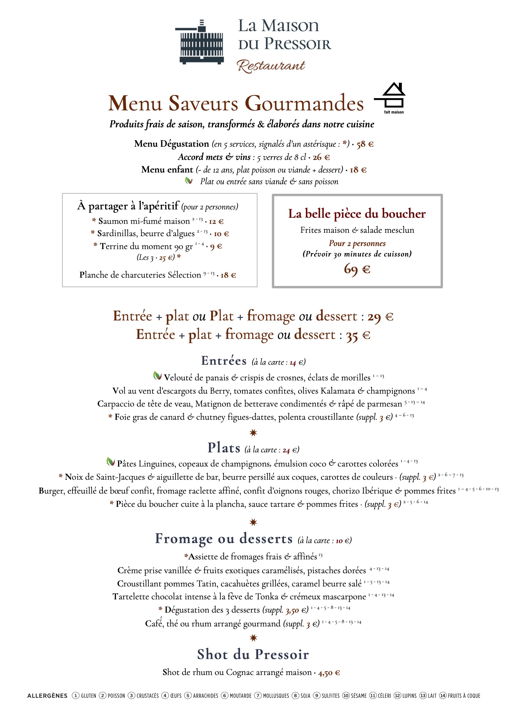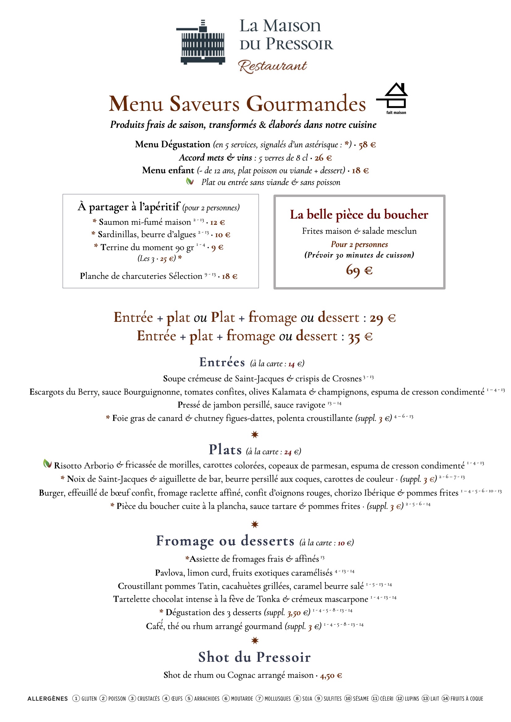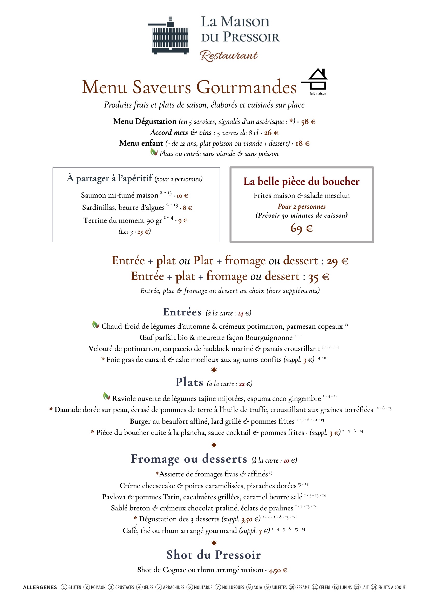 Nos menus changent au rythme des saisons, n’hésitez pas à revenir régulièrement